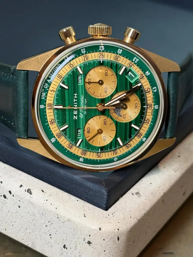 また、ムーブメントは最新型の”エル・プリメロ3600”を使用しており、従来と同じく高振動でありながら1/10秒計測のクロノグラフ機能、60時間のパワーリザーブなど大幅に進化を遂げました。