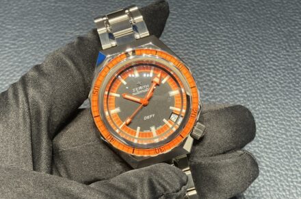 ”エリート”という、厚さ約3.28mmしかない薄型ムーブメントですが、いわゆるドレスウォッチと呼ばれるクラシカルなモデルや、過去にはダイバーズウォッチの『デファイクラシック』にも搭載されていた、ゼニスのもう一つの自慢のムーブメントです。