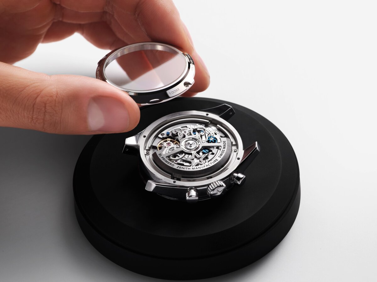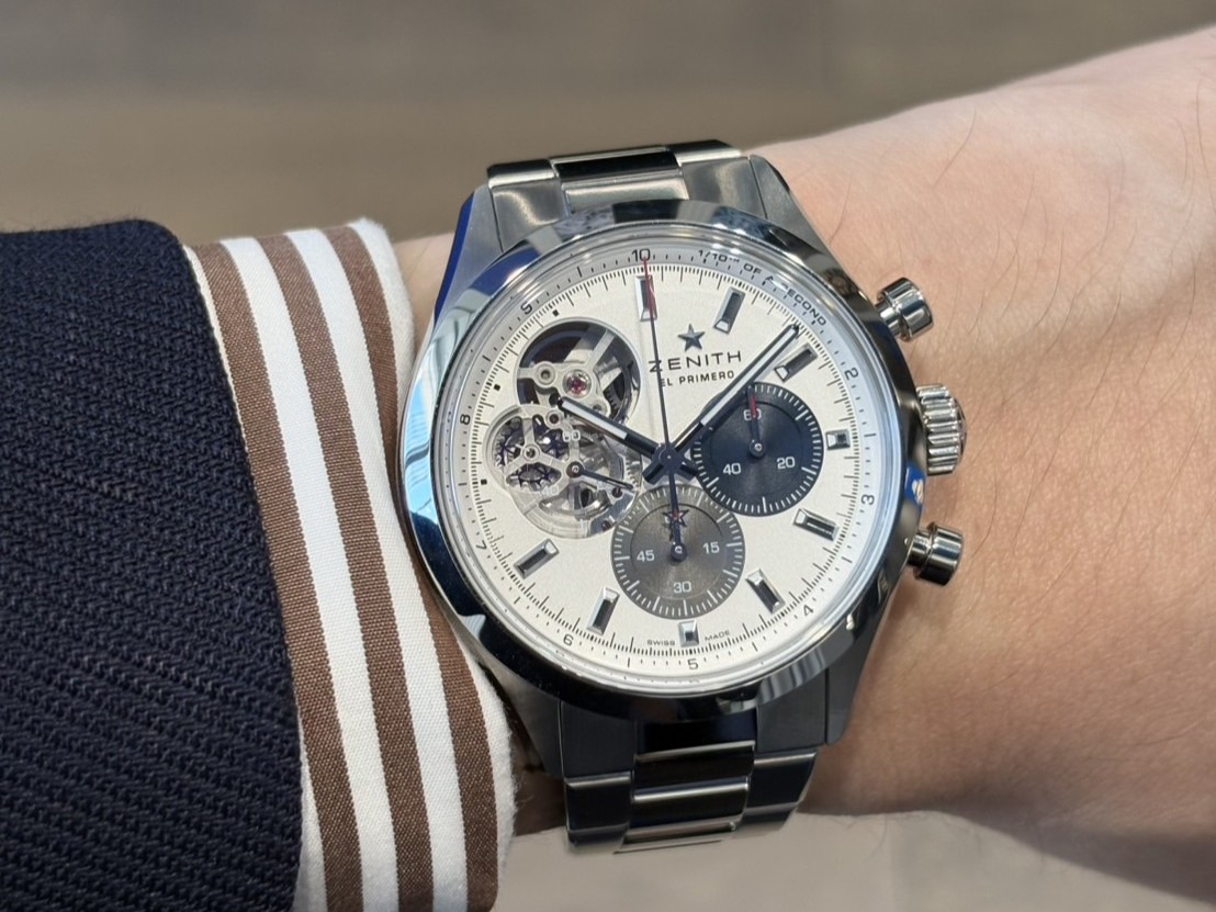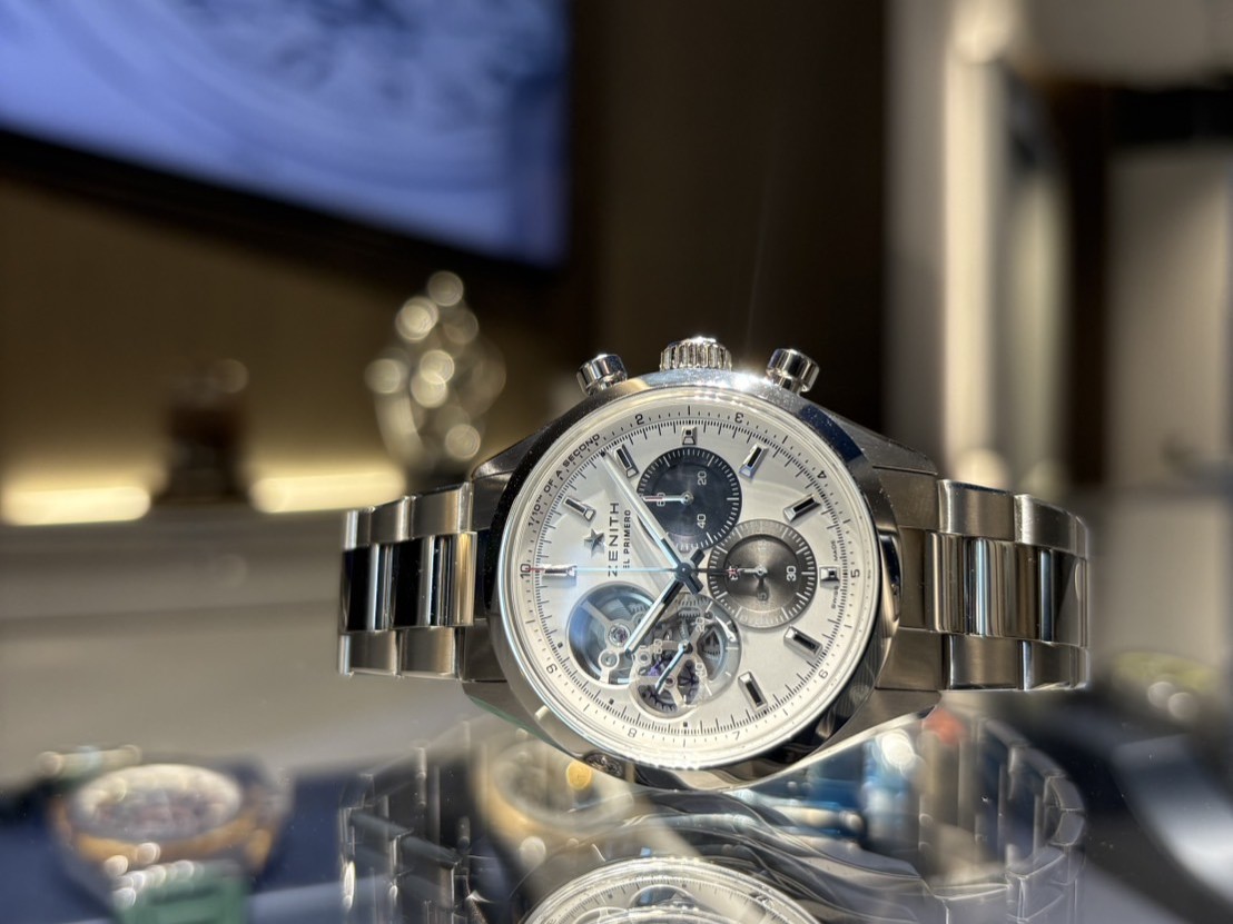 この開放感、視認性、そして“見せる機械式”の魅力が融合したデザインは、まさにゼニスを代表する一本と言えるでしょう。