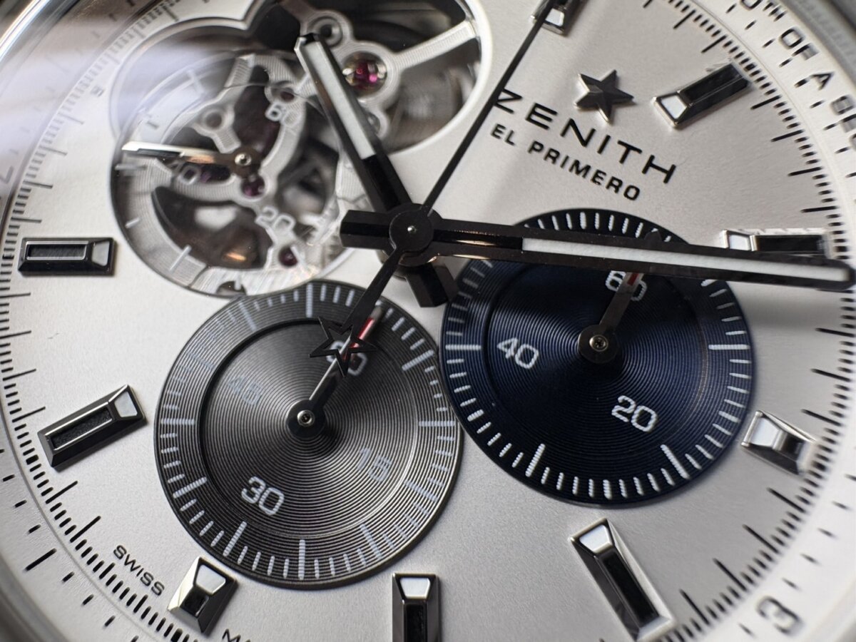 「クロノマスター オープン」は、ゼニスの代名詞である高振動自動巻クロノグラフムーブメント「エル・プリメロ」を大胆に“魅せる”ために、文字盤の一部を開口したモデルです。
