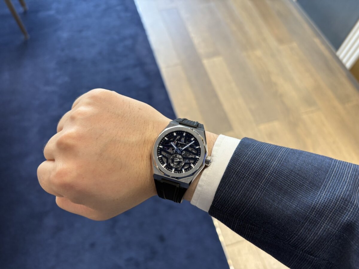 本日ご紹介するのは、ビジネスシーンでも着用できるスケルトン文字盤の腕時計、「デファイ スカイライン スケルトン」です。